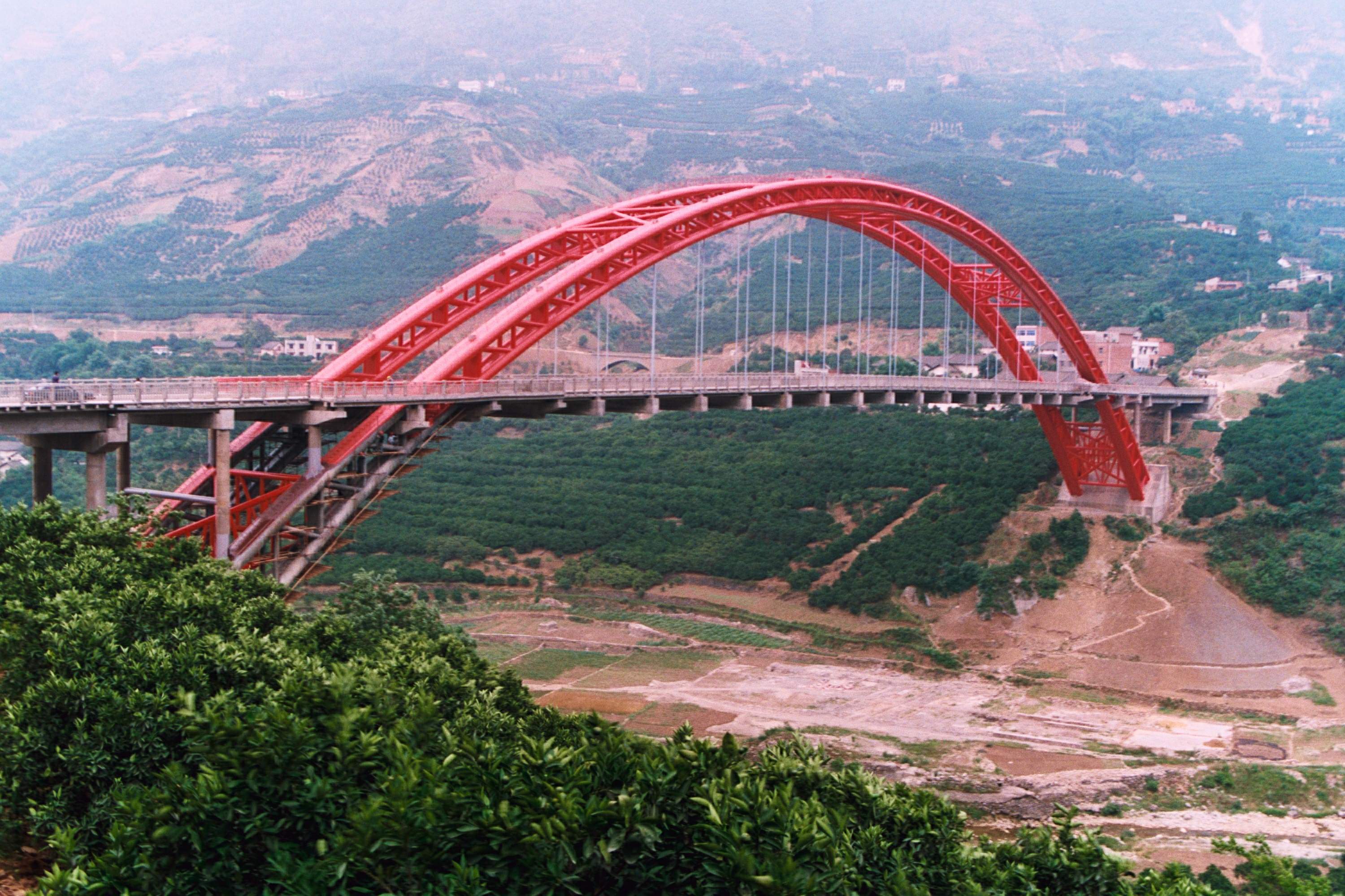 秭歸龍潭河大橋位于著名的中國臍橙之鄉----湖北秭歸縣腹地,主跨為208米的特大跨徑中承式鋼管混凝土拱橋,該橋在國內首次采用“大跨徑鋼管砼拱橋纜索吊裝塔架扣架一體化施工,獲湖北省科技進步二等獎,于2000年建成。