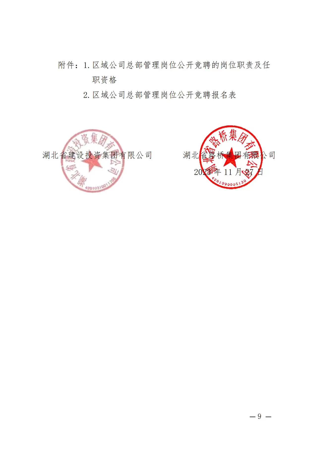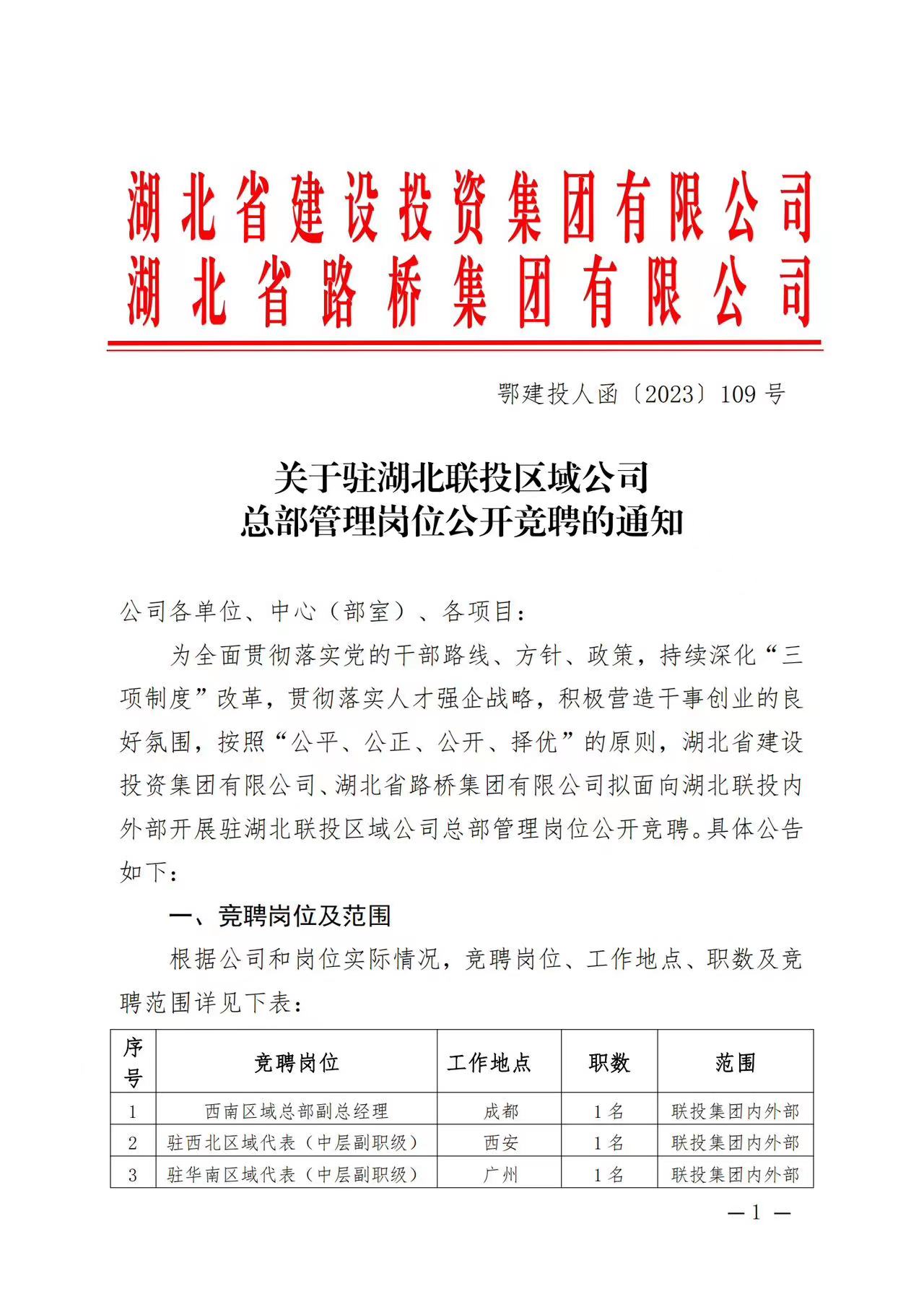 湖北省建設(shè)投資集團有限公司、湖北省路橋集團有限公司駐湖北聯(lián)投區(qū)域公司總部管理崗位公開競聘報名初審公示