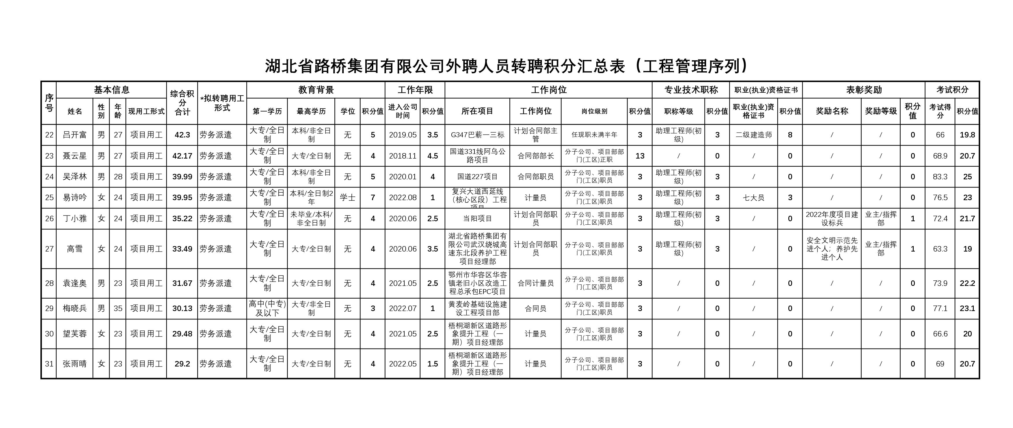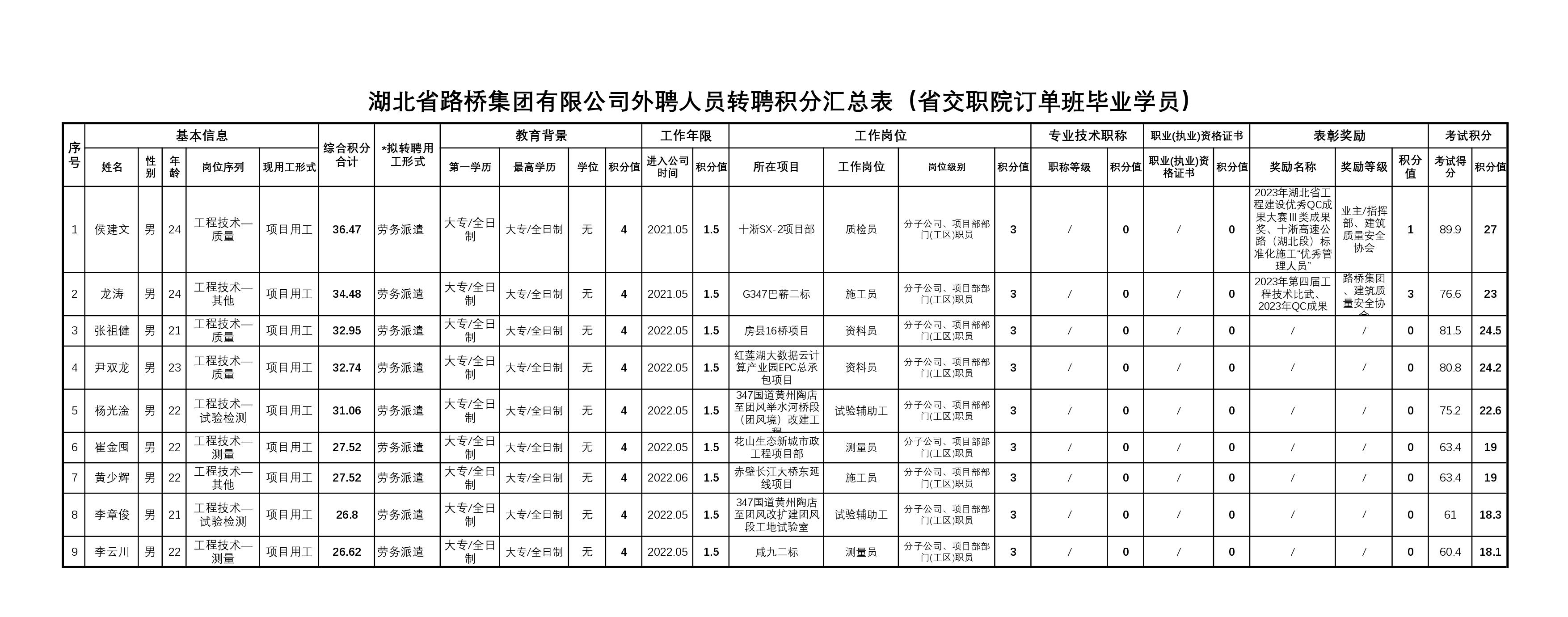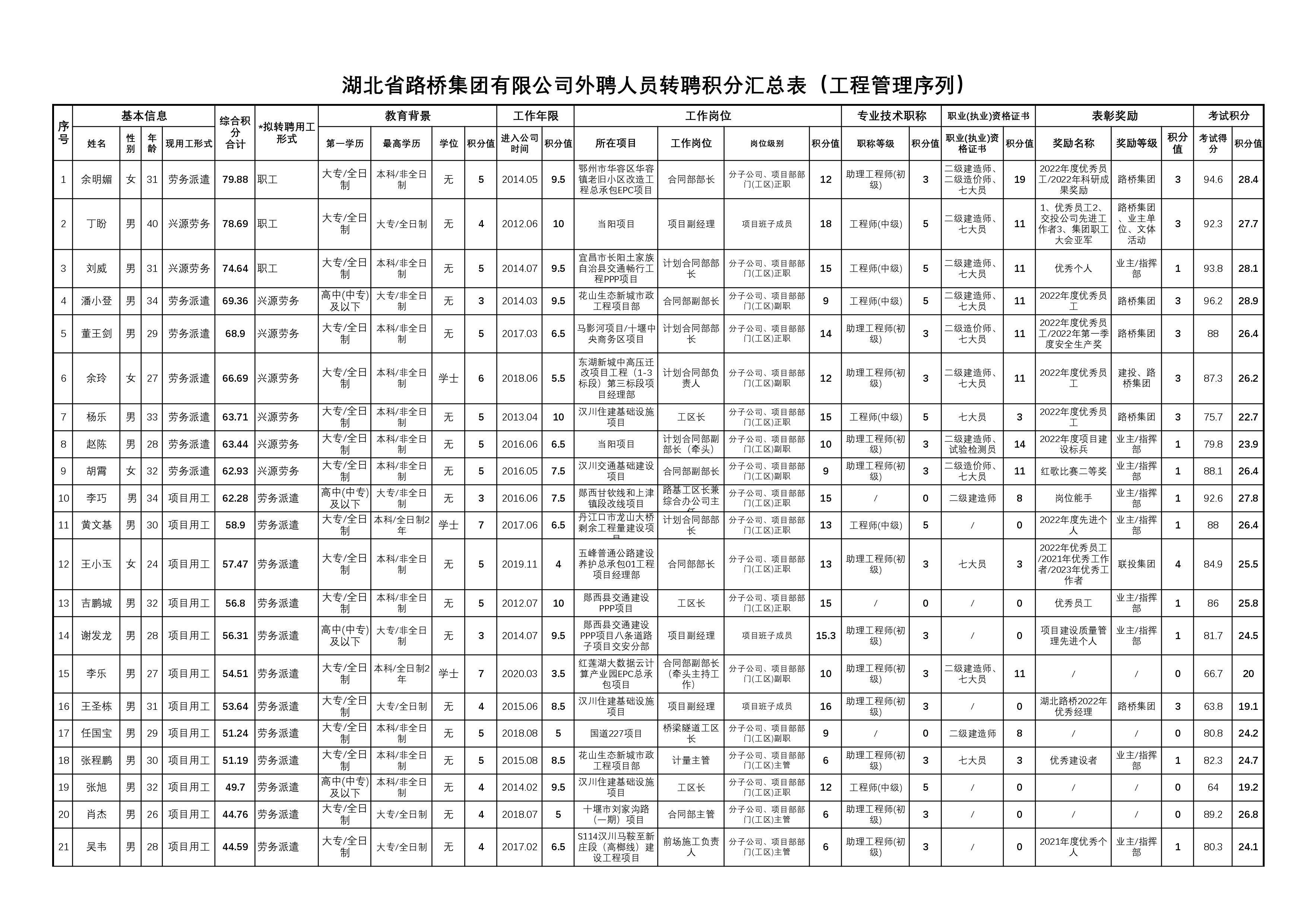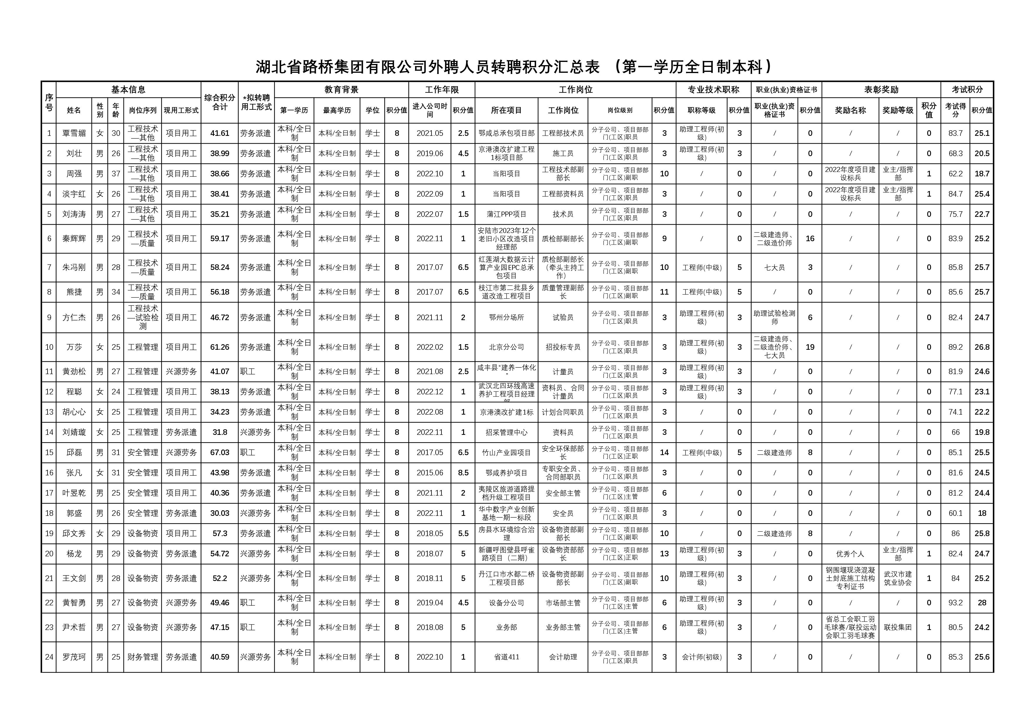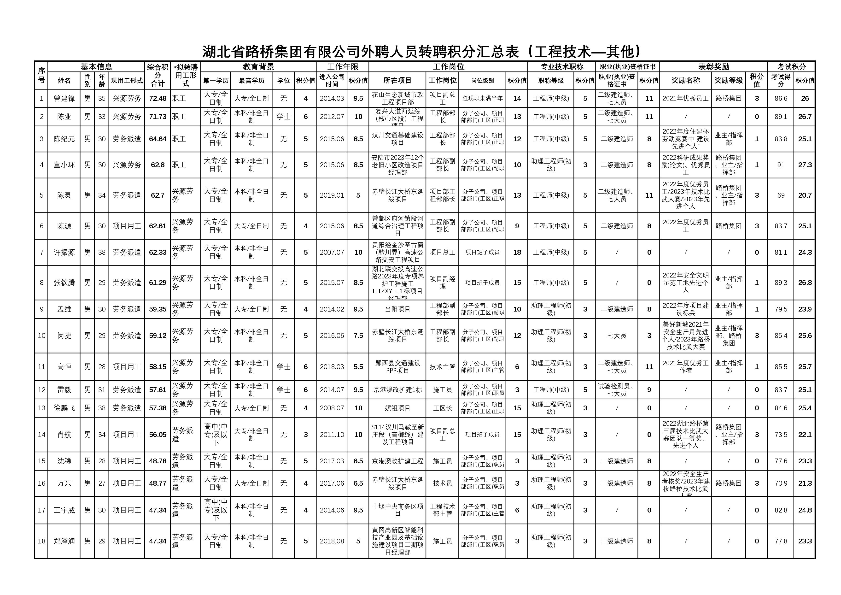 湖北省路橋集團(tuán)有限公司2023年擬轉(zhuǎn)聘人員公示
