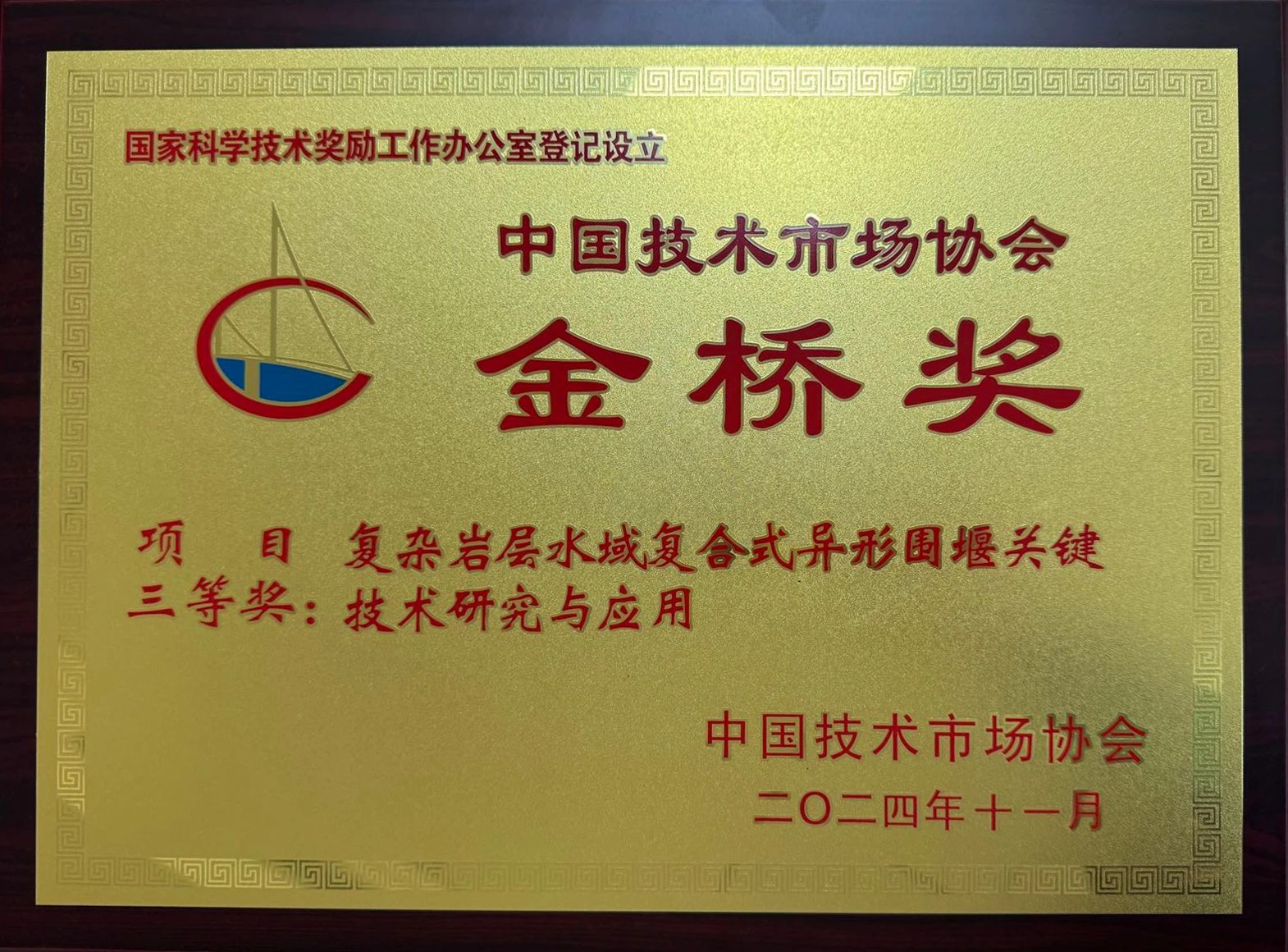 近日,第十二屆中國技術(shù)市場協(xié)會金橋獎在北京召開獎勵表彰大會,湖北路橋主持研究的“復雜巖層水域復合式異形圍堰關(guān)鍵技術(shù)研究與應(yīng)用”在近千個項目中脫穎而出,榮獲“金橋獎”項目獎三等獎。這是公司連續(xù)兩屆斬獲該獎項,再次證明了湖北路橋在科技創(chuàng)新成果轉(zhuǎn)化和技術(shù)推廣應(yīng)用領(lǐng)域的卓越實力。