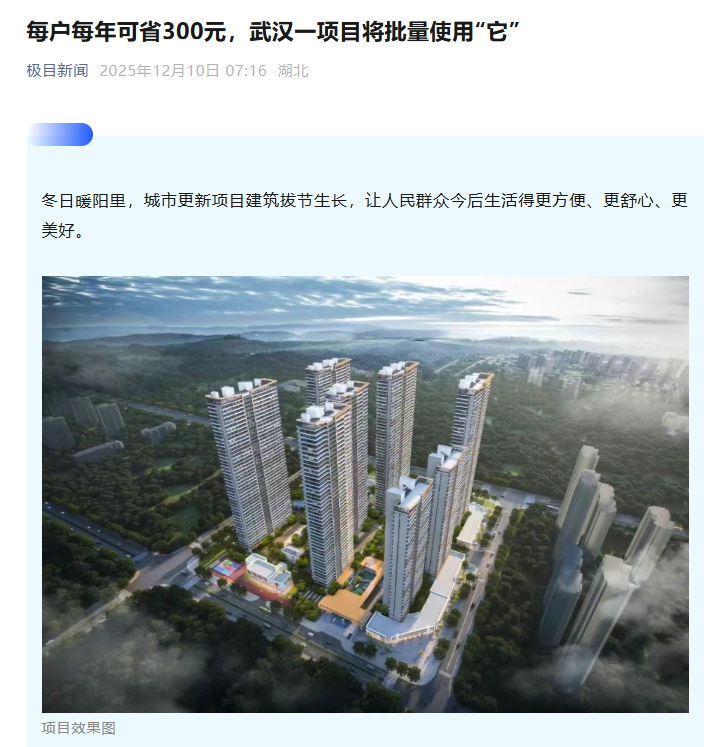 媒體聚焦丨每戶每年可省300元,武漢一項目將批量使用“它”