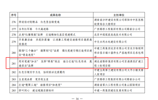 企業榮譽|湖北路橋京港澳改擴建工程1標項目獲評“工程建設企業黨建工作優秀二等成果”